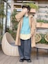 も な こ です。 イエローのチェックシャツと ミントグリーンのニットでカラフル🌈 パンツはシルエットに 丸みのあるデザインで、 カジュアルにも個性的にも着られます。
