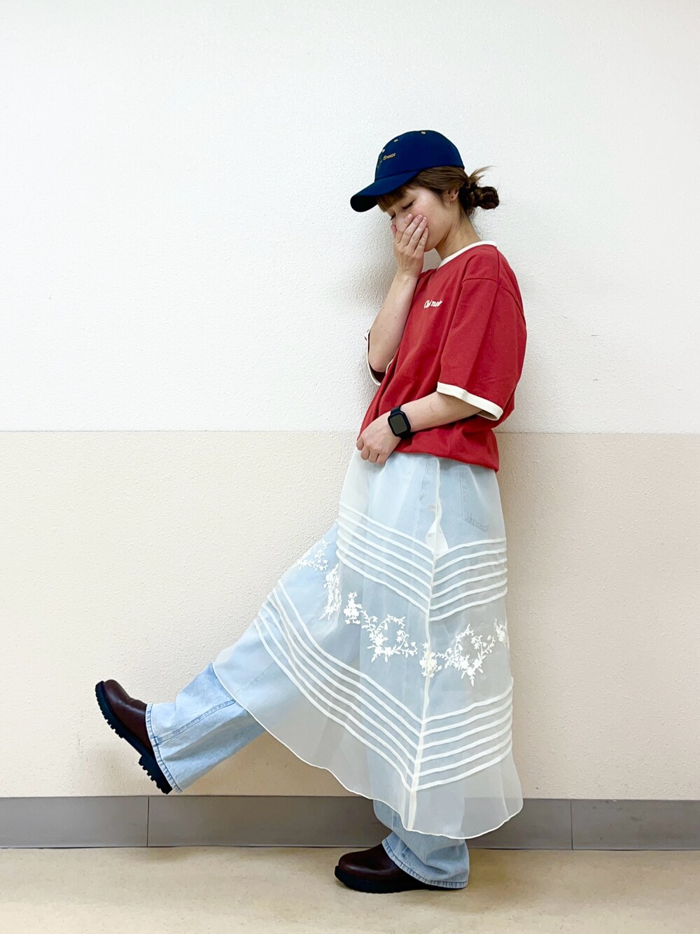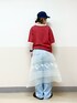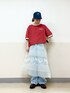 も な こ です。 前回の投稿のコーディネートをベースに オーガンジーのスカートをプラス♪ カジュアルガーリーに ·͜· フワッと可愛いが似合わないかも!だけど着たい!!な方にオススメなコーディネートです