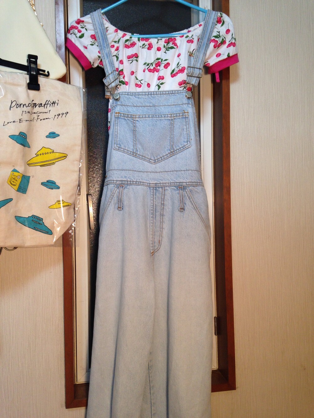 どちらも古着です! サロペットだとボーイッシュに見えがちだと思いますがオフショルダーのトップスと組み合わせることで女の子らしさを表現しました!