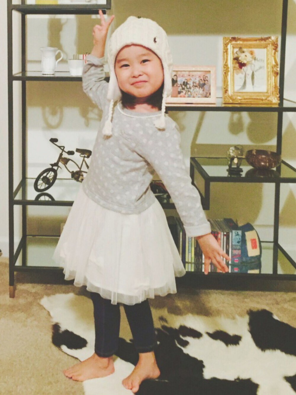 今年初のニット帽。よそ行きのワンピースと一緒に合わせました。