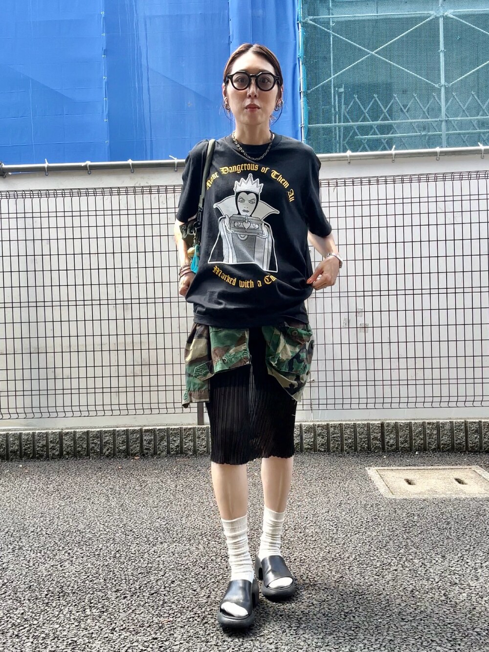 VIDEOSHOPシリーズのTシャツ、私の推しは白雪姫とマレフィセント! トップはTシャツ1枚でシンプルに、ボトムは色々レイヤード。