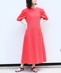 レッド系のワンピースを着用したレディースの夏コーディネートの1枚目の写真