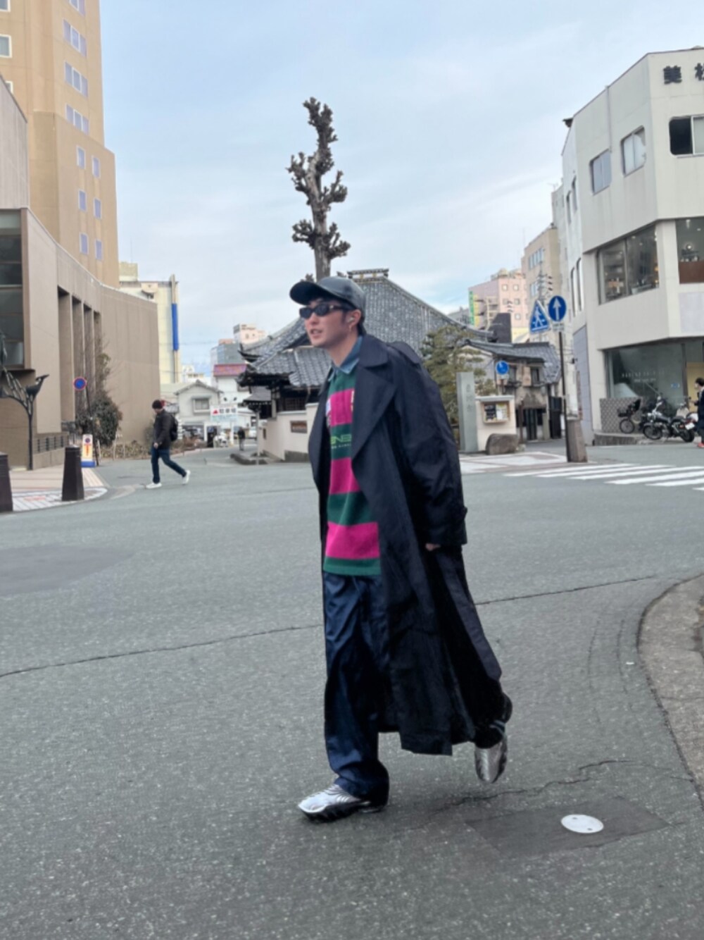 ホルマリン漬けのステンカラーコートを使ったコーディネート