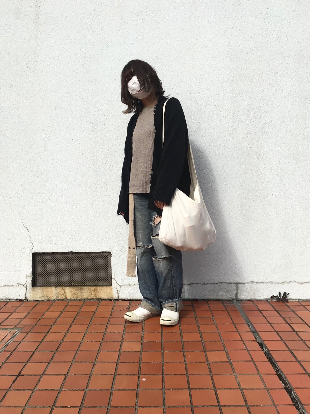 瀬矢のカーディガン/ボレロ「ダメージVロングカーディガン/804942」を使ったコーディネート