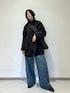 ツヤ感のあるアウターなので、暗く重たい印象にならずに着られて良かったです! ストンとしたシルエットなので、ハンサムな印象が強くてとても好みです🥰 ふわふわもこもこの大きいバッグとブルーのデニムを合わせて、キレイめカジュアルコーデにしました!