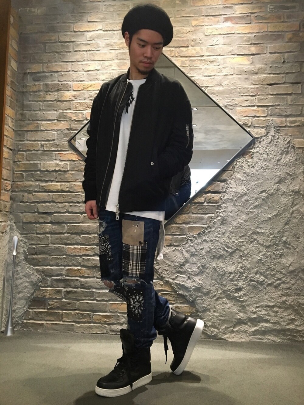 ギャザーの入った特徴的なMA-1にインパクトあるデニムでのコーディネート^o^