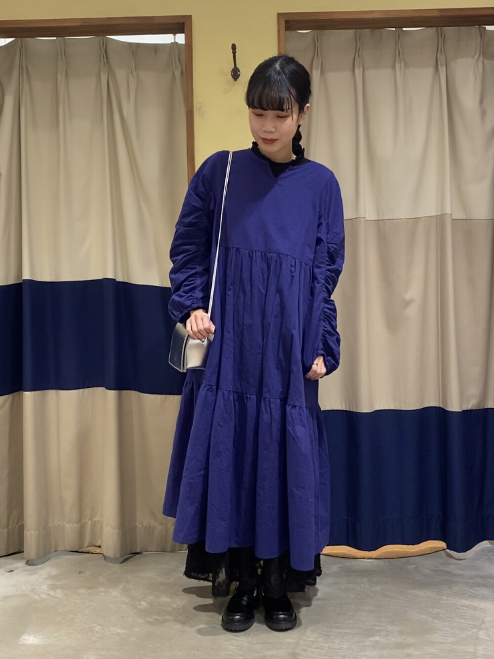 inoのワンピース「袖ギャザーティアードワンピース」を使ったコーディネート