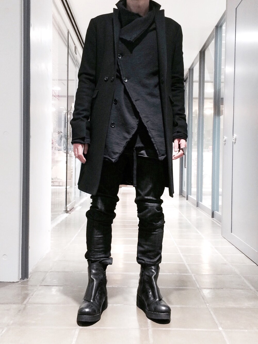 leyerd style! chester coat 【rewords rewordsdesign】 asymmetry jacket 【thom/krom】 coverd boots 【portaille】 NOIR SAPPORO