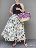 184ボタニカル柄スカート|夏コーデ