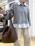 ポロニットとシャツの レイヤードが今年っぽくて 可愛いです♡ デニム合わせでシンプルに◎ Instagramもフォローしてね▶︎▶︎@noji_3199