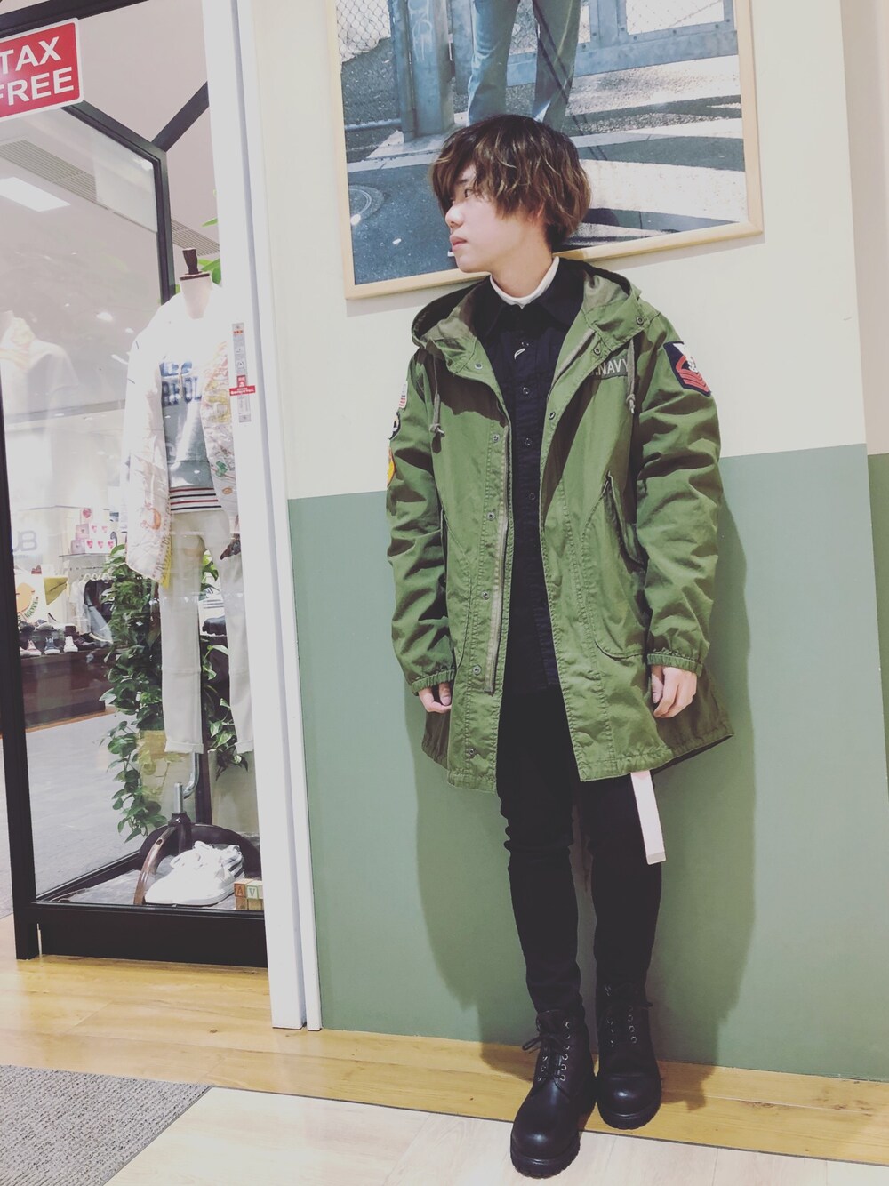 こんちわーーー!!! 今回は春物アイテムの新作モッズコートのコーデ👍👍 カーキに黒のミリタリー シャツってゆー渋さ💃 この緩さがまた最高🍣 アウターsizeL シャツsizeM 靴size25