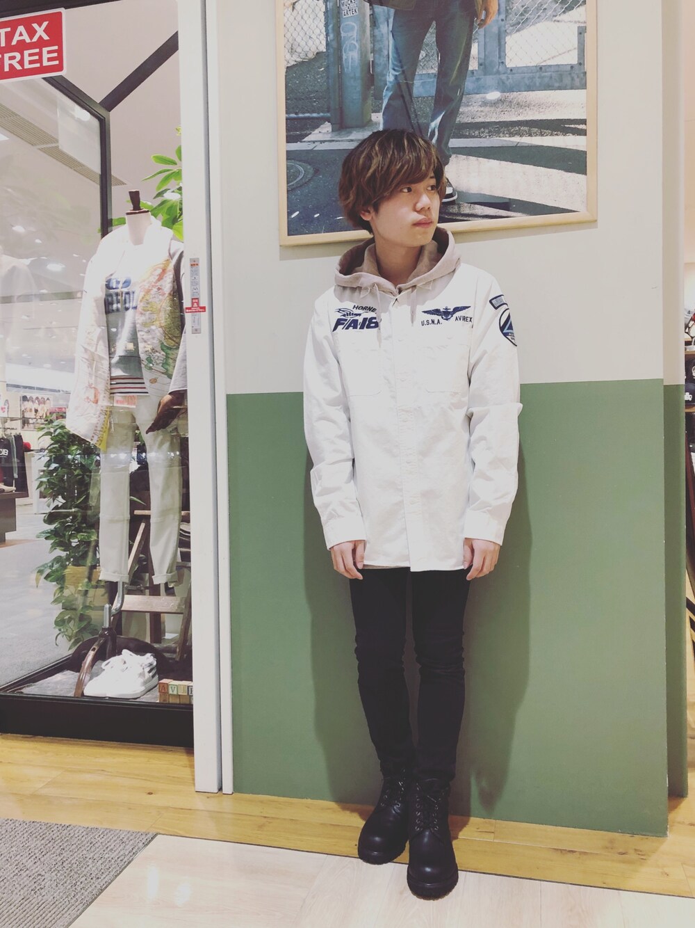 こんにちわ〜 今回は白のミリタリー シャツコーデ👖 パーカーと組み合わせるのかなりツボでーす👖 シャツsizeM 靴size25