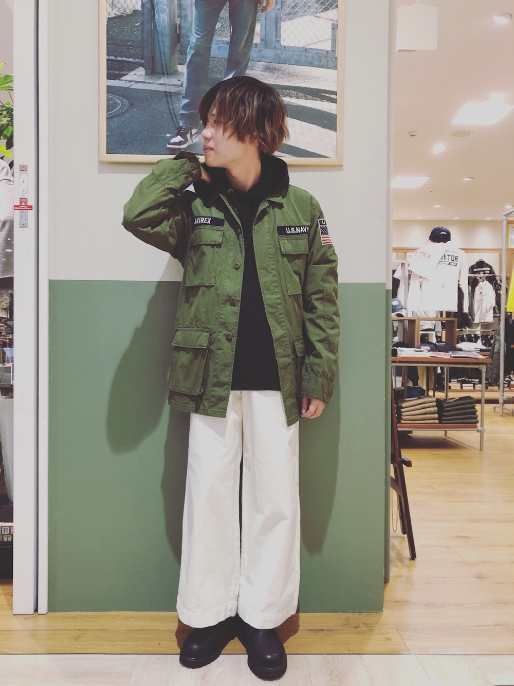 こんちわ〜 今回はミリタリージャケットを使ったコーデ🧥 意外とレディースのパンツはいた感じ良かったです👖 カーキのジャケットとの合わせも👍👍👍 ジャケットsizeM パーカーsizeM パンツsizeS 靴size25