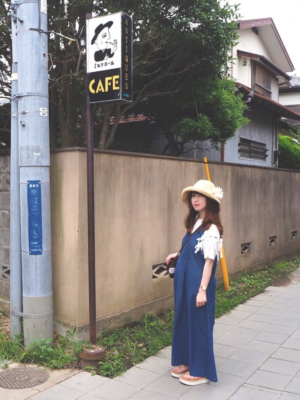 麦わら pristine ジャンパースカート used ▼ 鎌倉へ旅行したときの♡ お気に入りの古着屋さんで買った ジャンパースカートかわいすぎる♡ いまは妊婦になったので 出来る範囲でお洒落を楽しんでおります…★