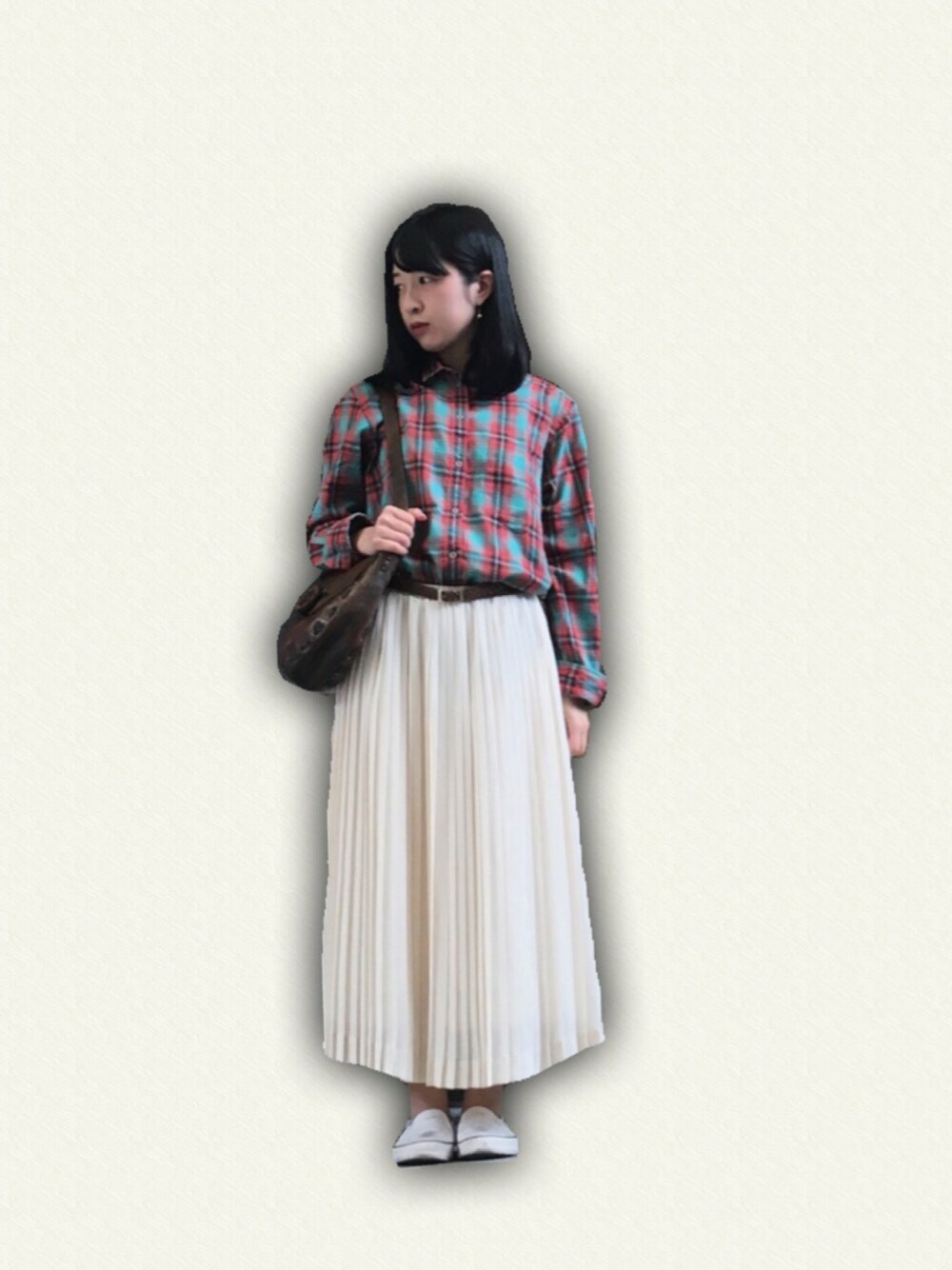 シャツ: used スカート: used ベルト: GAP バッグ: used ▼ 古着コーデ◎ スカートは最近大須のlalaで買ったもの♡ この春たくさんはこうと思います〜