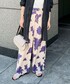 少し秋を意識したカラーのコーディネートです。 トップスのカットソーはトレンドの肩パッド入り。肩パッドは取り外し出来ます。綿100%ですがカジュアル過ぎず、少し光沢のある素材感です。襟ぐりは狭めで、あまり開いていないのでインナーを気にせず着ていただけます。 パンツはぼかし花柄プリントが大人っぽいセミワイドパンツです。薄手で夏の日もOK。裏地付きです。ポリエステルなのでご自宅でのお洗濯も大丈夫!
