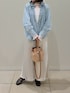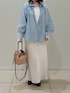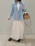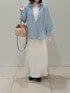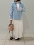 大人気のフリルギャザーデニムブラウスに新色が登場! 柔らかい素材感でとても着やすく、シーズン問わずに使えるブラウスです。 羽織りにしても、スウェットなどの中に着ても可愛いです! インナーに着ているレースもとても便利!ストレッチが効いた生地でとても着やすいです。袖がフレアーになっているので少し出して見せて着るのがオススメです。 スカートは、光沢が美しいロングスカート。ウエストはゴムで履き心地がとても良いです。 カジュアルにもキレイめにもどちらにも使えます。