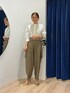 着用サイズ トップス38サイズ ボトムス36サイズ パールラメレースブラウス🌿 顔周りが華やぐ素敵なレースです ラグラン袖口で、腕周りは程よく ゆったりとしています アウトして着ると、後ろは お尻が3/4隠れる着丈です カーゴパンツで合わせましたが 綺麗目なスカートやパンツで 合わせるとオケージョンにも対応できます
