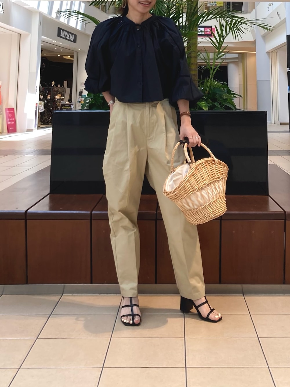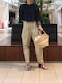 レース使いがすてきなボレロ。これからの季節の羽織としてもおすすめです。 前ボタンを全部しめてブラウス感覚でも着て頂けます。 あわせたテーパードパンツはシルエットがきれいです。ベージュのパンツは一本あると何かと便利なお色味です。