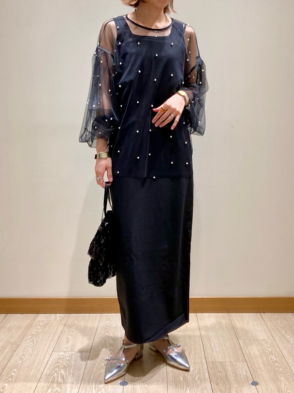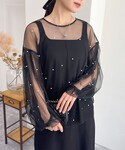 ブラウス→トレンドのシアートップス。パールが華やかになるのでオケージョンにもおすすめ。だいぶ透け感があるのでインナーによって雰囲気が変わります。 ワンピース→ベーシックなキャミワンピース。シンプルでラインもすっきり綺麗なので着回し力抜群です。一着あるとオンオフ問わず活躍します。