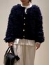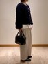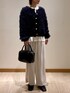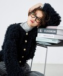 金ボタンが可愛いフリンジカーディガン。存在感があるので他のアイテムはシンプルなものでまとめてあげるとバランスがとりやすいです。