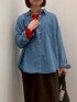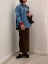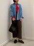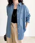 シーズン問わずに活躍するデニムシャツ。シンプルなデザインなので流行り廃りなく着回せます。ツイードスカートと合わせれば秋冬らしい雰囲気に。