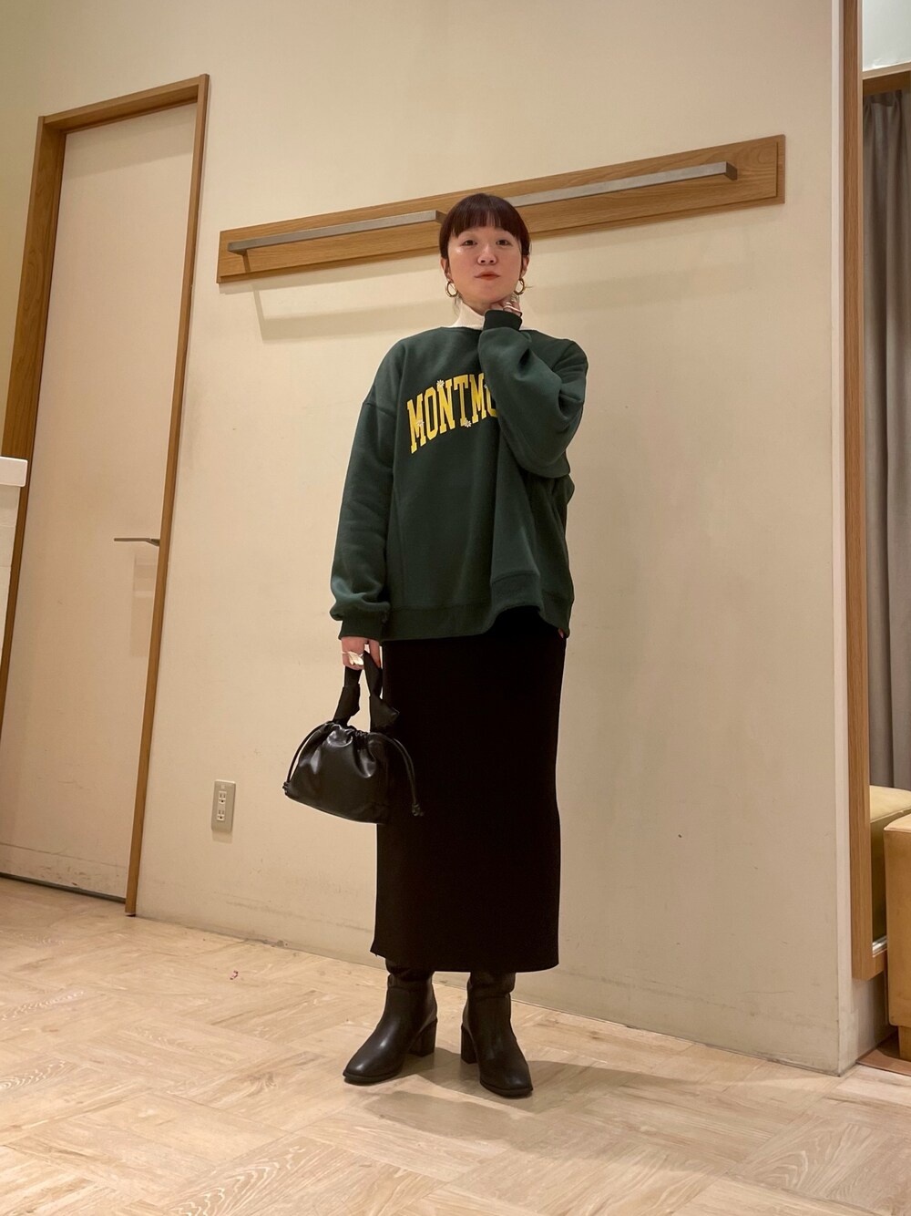 フレディのロゴスウェット。 首周りがやや広いデザインなので、タートルなどをレイヤードするのもおすすめ。
