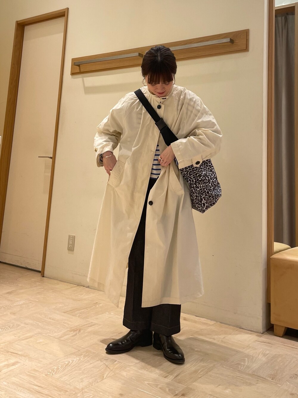 ほこ(FREDY & GLOSTER イオンレイクタウン店)のステンカラーコート「ナイロンステンカラーコート」を使ったコーディネート