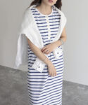 ほこ(FREDY & GLOSTER イオンレイクタウン店)のワンピース「ボーダー2WAYフレンチスリーブワンピース」を使ったコーディネート