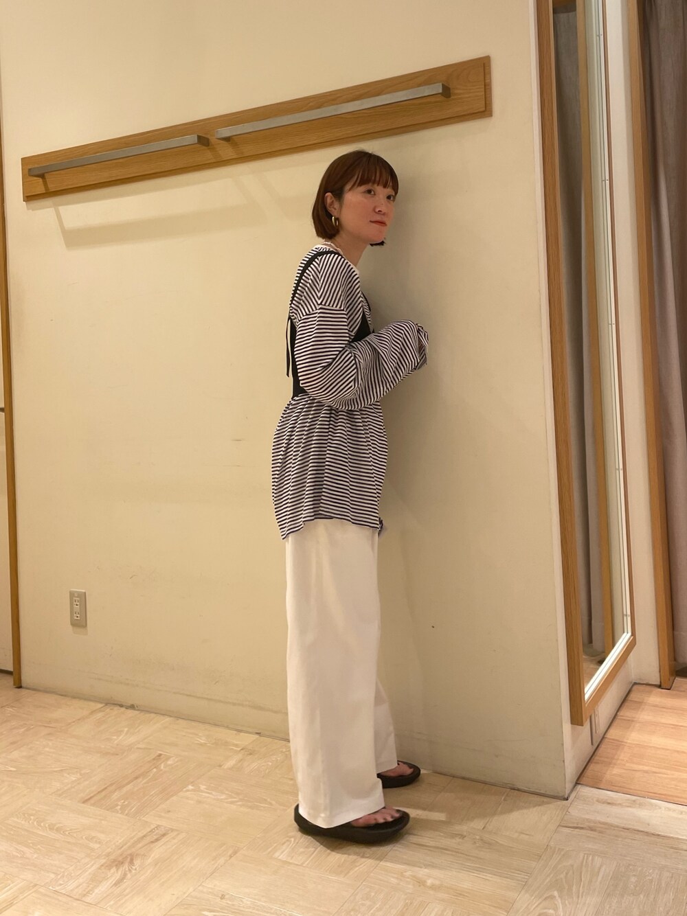 大人気!シアーボーダー! ホワイトのパンツで爽やかにしました。