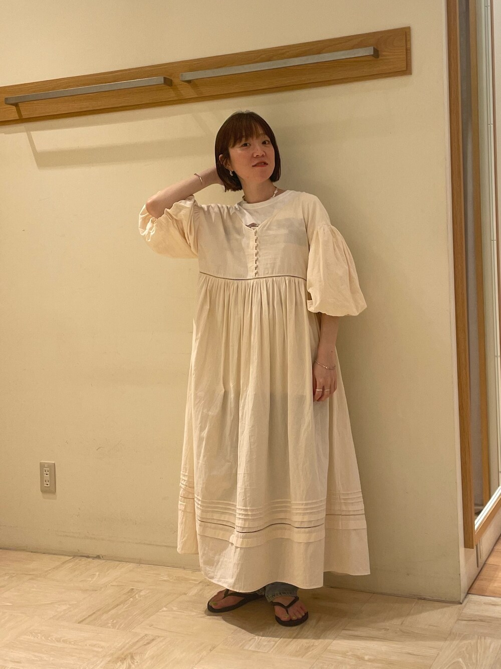 ほこ(FREDY & GLOSTER イオンレイクタウン店)のワンピース「【fredyemueフレディエミュ】パフスリーブドレス」を使ったコーディネート