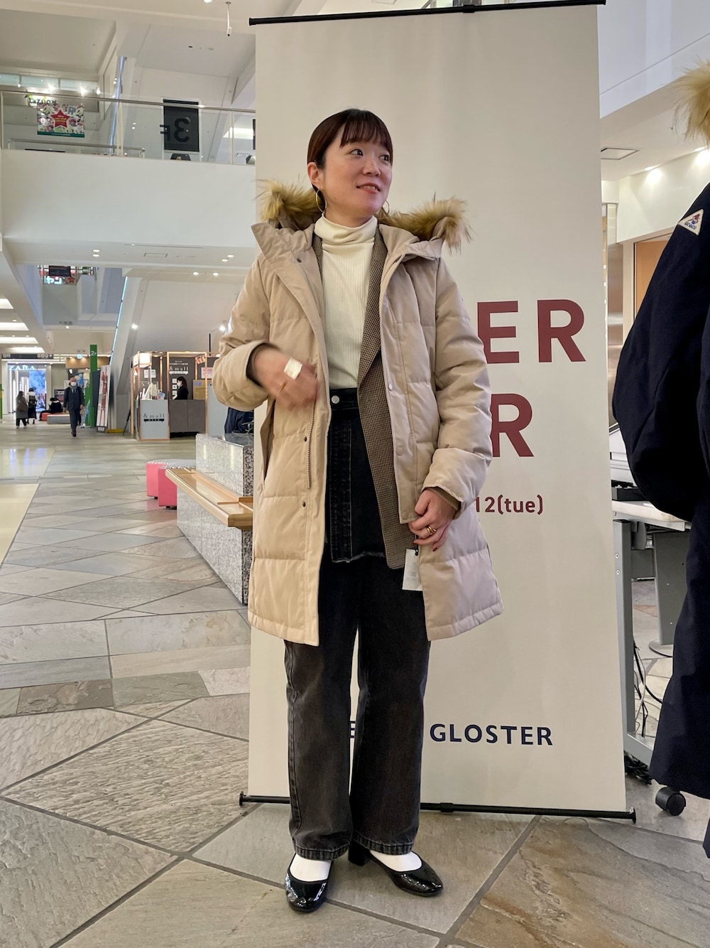 ほこ(FREDY & GLOSTER イオンレイクタウン店)のダウンジャケット/コート「【GEVACO/ゲバコ】タッサーロングダウン」を使ったコーディネート