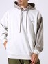 秋のパーカーコーデ。 スウェード調の生地のパーカー。袖・フードの配色デザインで1枚で良い感じに着用できます。 インナーでもフードのバイカラーがアクセントになるし、これから活躍間違いなしのフーディです。