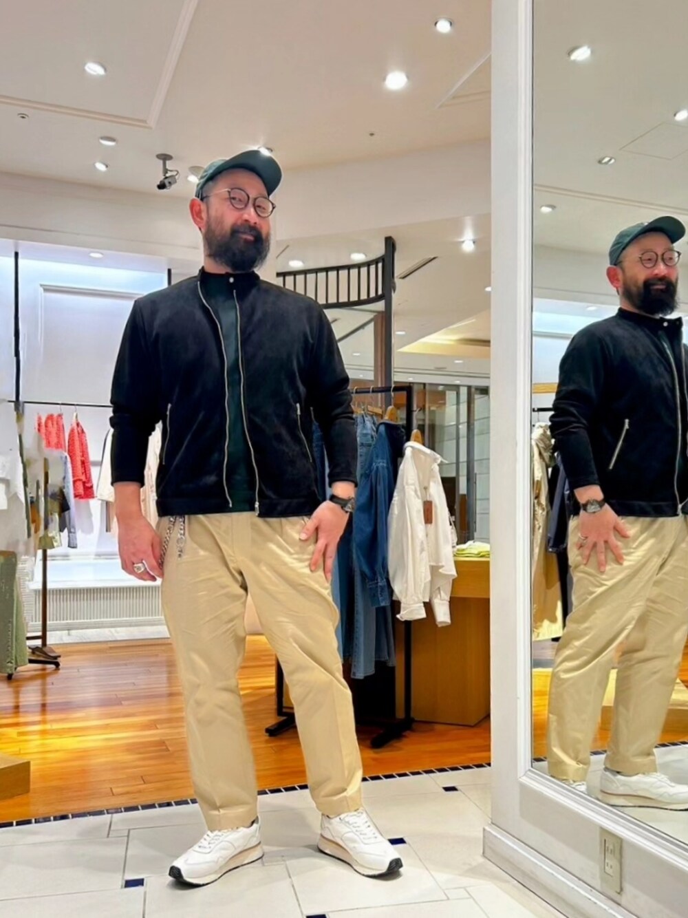 【Coordinate】 暖かくなってくると.. カラートーンを明るく、色物を着用したい。 そんな欲求が出てくる。 ◎ブルゾン フェイクスウェードライダース。 よく伸びる!洗濯出来る! ◎Tシャツ シルケットドレスT 新色登場!着やすく、レイヤードさせた時の 見え方が気に入っている。キレイ見えする のがとても良い。 ◎キャップ ハロ.コモディティの サンダーバード🐦️キャップ 可愛いい刺繍が付いている。 ※サンダーバード インディアンの伝承の方では無く、直訳で 日本の雷鳥モチーフである。ちゃんと頭が 赤い!