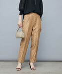 シアーラッフルブラウスもセールに✨ 襟部分が気になる二の腕を程よくカバーしてくれます◎ シアーでかなり軽い着心地なので夏にぴったり。 ジャケットやカーディガンのインナーにしても、華やかな一枚です! パンツはジャガードのドット柄で、細身すぎないテーパードなのでボディラインを拾いにくく、シルエット綺麗です! ウエストの後ろはゴムで履き心地も抜群。 裏地なしなので、夏の時期からすぐに楽しめます♪