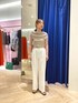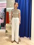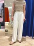 私もリアルバイしたシアーオフショルニット。 サマーニットでかなり軽くてシアー素材なので、夏でも涼しくお召しいただけます。 オフショルにしてもヘルシーで可愛いですし、そのまま着れば、そこまでデコルテまわりが出過ぎないので安心です! パンツは接触冷感、UVカット、防シワで 白でも透けにくいです! ワイドでもとろみがあってボリュームが出過ぎないのでオススメです。 何よりウエストゴムで履きやすい◎