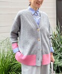 YUKA(ノーリーズ広島八丁堀店)のカーディガン/ボレロ「5GノアリスゆったりVネックカーディガン」を使ったコーディネート