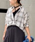 シアー感のあるポリエステルコットン素材のベーシックシャツ! シワになりにくいイージーケアです(ㅅ´ ˘ `) ベロアのリボンは取り外し可能で、アレンジを楽しめます! 内側のボタンを留めるとボトムにインしたようにも着こなせる2WAY仕様💞 1枚で着るのもインナーにするのもおすすめです¨̮⃝ 大きめなプリーツが目を引くミドル丈のプリーツスカート👗 中ヒップまでプリーツが開かない仕様で、お腹周りスッキリ見え! 今年らしいプレッピースタイルも取り入れたい1枚🙌🤍