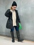 洗えるダウンコート! (付属のメッシュ袋に入れてマシンウォッシャブルが可能です) ウエスト内側がドロスト仕様になっているので、自分の丁度良い形に変えてもらえます。 袖口も調節が可能♪ とにかく軽くて温かいです。 中に着ているポロ衿ニットはオーバーシルエットで重ね着や低身長さんはショートパンツとの着こなしも可愛いです。