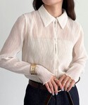 ・トップス シアー感がかわいいブラウス♡ 軽めの素材なので着心地◎ ボタンを閉じてトップス風にしたり羽織としてもお使いできます。 ・パンツ キレイめにもカジュアルにも使いやすいデニムスラックス。 センタープレス入りなので足を綺麗に見せてくれます。 34サイズから展開しているので、小柄な方にもおすすめです✨️ 身長151cmで丈つめなしでも履けます◎