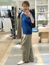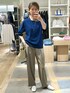 ジョーゼットコクーンスリーブ プルオーバー リラックス感のあるドルマンコクーンスリーブ、5分袖で二の腕カバー、少しつぼまっている裾まわりでウエストインせずおさまり良く着れます。 着用は落ち着いたブルーにとろみのあるポリエステル素材ワイドパンツをあわせています。薄いカーキ色はカジュアルになりすぎずベージュ感覚で使えるきれい目カラーです。