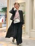 フェイクレザーブルゾン シルバーのドットボタンが目を引くデザイン、肩落ちと袖のゆとりがオシャレポイントです。 着用はブラックの上下に赤のボーダーを効かせたシンプルコーデ、シルバーのバックを斜めかけしてポイントを作りました。 レザーのブラックはハードに見えやすいのでギャザースカートや赤をプラスして甘さを出しています。