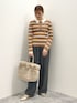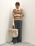 〇襟付きニット(38サイズ) 衿付きデザインがカジュアルになりすぎず 綺麗め感をプラスしてくれるプルオーバー。 ほどよくフィット感のあるシルエットと 縦ラインを強調するリブ使いですっきりな印象に。 伸縮性があるので楽ちんな着心地です。 ○ワイドパンツ(38サイズ) 広がりすぎないワイドシルエットで きちんと感と動きやすさが両立されたロングパンツ。 シワになりにくいさらっとした生地感です。 152cmでフラットシューズを合わせて 裾が床にくギリギリになりました。