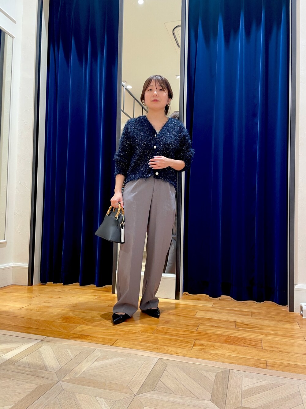 nolhamada(ノーリーズ京都大丸店)のカーディガン/ボレロ「《手洗い可能》ラメファンシーVネックカーディガン」を使ったコーディネート