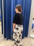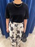 ・シアーベロアTシャツ トレンドのベロアTシャツ。ワンサイズ展開です。いつも、Tシャツだと38サイズを着ていますが、 こちらはワンサイズでも、程よいゆとりがあります。袖丈も肘くらいまであるので、これから 秋口にかけてもきていただきやすいと思います。 ・ぼかし柄イージーワイドパンツ 36サイズ着用。全体的にゆとりがあります。 体のラインも全く拾いません。ストレスフリーで涼しくお召しいただけます。 裏地がしっかりしているので、透けは気になりませんでした。着丈は私には少し長めで、 ヒールのある靴を履いてちょうどくらいでした。