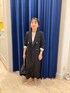 ・ジャケットは38サイズを着用しています。 少しゆとりがあったので、普段36サイズの方でしたら、36サイズで良さそうです。 裏地もしっかりあるので、お仕事のジャケットととしても、秋から冬にかけての アウターとしても着やすいと思います。 ・ベロアスカート 36サイズを着用しています。ウエスト周りやヒップ周りはタイトめでピッタリしています。 しかし、体のラインが出ることもないので 着やすいです。着丈は足首が出るくらいの長さです。冬にはニットやロングブーツで合わせても可愛いです。