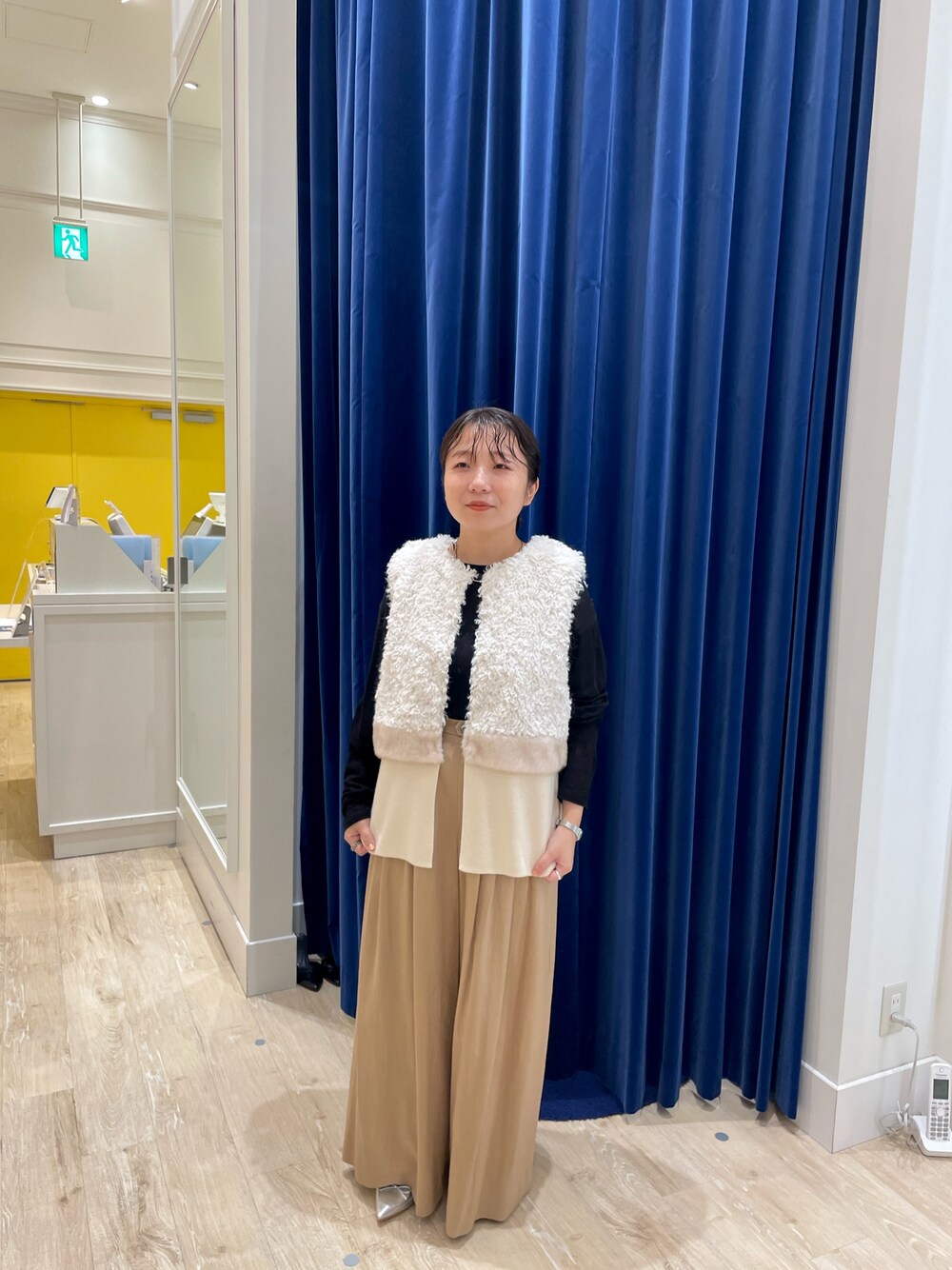 nolhamada(ノーリーズ京都大丸店)のベスト「エコファー切り替えニットジレ」を使ったコーディネート
