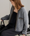 フワフワが可愛いニットジャケットです。 チェーンがポイントになっていて、 あけても、閉めても可愛いジャケットです。 ワンサイズですが、ゆとりがあります! 着丈長めのシャツと合わせても可愛いです。 パンツでもスカートでも合わせやすく デニムでカジュアルスタイルでも🙆♀️ 温かく秋から冬にかけての羽織として 重宝します。