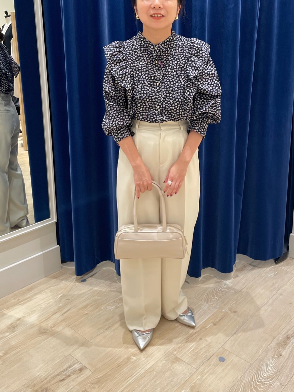 今の季節におすすめのきれいめカジュアル コーデです。 ・ブラウス 両前着用可能です。肩のフリルがとても可愛いブラウスです。腕周りにもボリュームがあります。手首を見せてあげるとすっきりとした印象になります。ワンサイズですが、大きさはちょうど良かったです。 ・パンツ 36サイズを着用しています。ウエスト周りはちょうどよく、着丈は4cmくらいお直しをしてもいいかなと思いました。ヒップ周りや、 渡幅もゆとりがあり、体のラインも拾いません。オフホワイトは裏地もついており、 薄めのカラーのインナーだと透け感も全くきになりません。