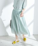 夏におすすめの、シアー素材のセットアップスタイルのご紹介。 シアー感のあるソフトなオーガンジー素材を使ったセットアップです。 程よい光沢があり、柔らかい素材感が女性らしいです。 ブラウスは、前後両前着用可能ですが、今回はボタンを前にしてポイントを持ってきました。 肘くらいまでの袖丈で、羽織いらずのブラウスです。 スカートは、同素材の透け感のある軽やかなスカートです。 ウエスト周りのギャザーでふんわりとしていながら、軽やかな素材感でボリュームが出すぎないのがポイントです。 涼しげなミントグリーンのセットアップで、爽やかな上品スタイルに仕上げました。